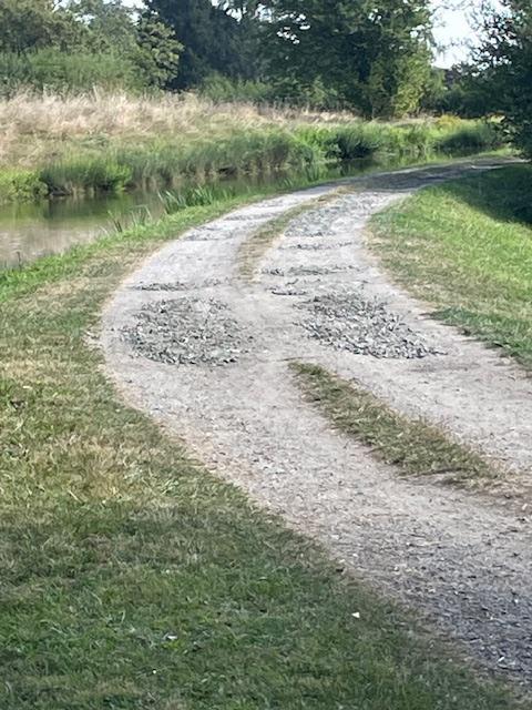 Bouchage des ornières et des trous du chemin en régie avec les matériaux fournis par la municipalité; un peu d'huile de code pour les quelques bénévoles qui ont réalisé cette opération d'entretien.