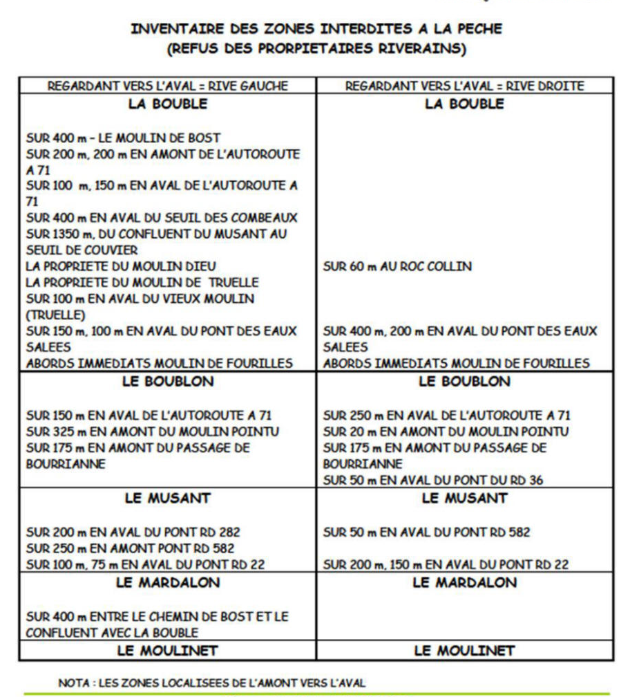 Le BOUBLON , en 2ème catégorie, de l'A71 jusqu'à sa confluence à la BOUBLE